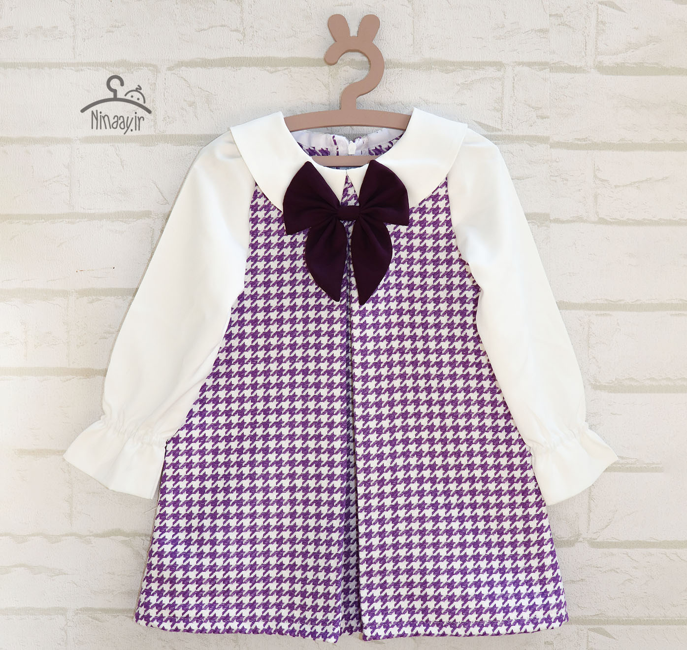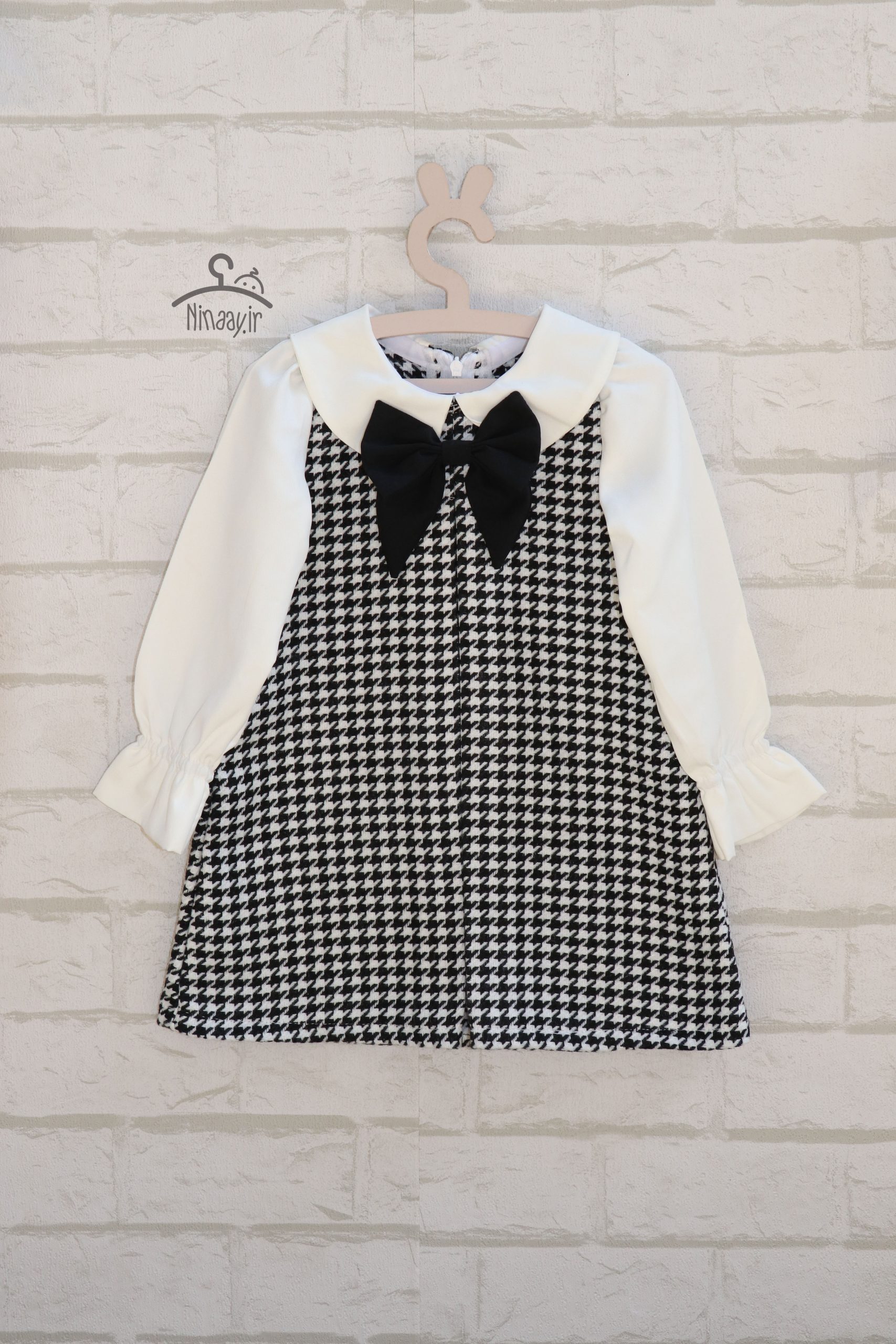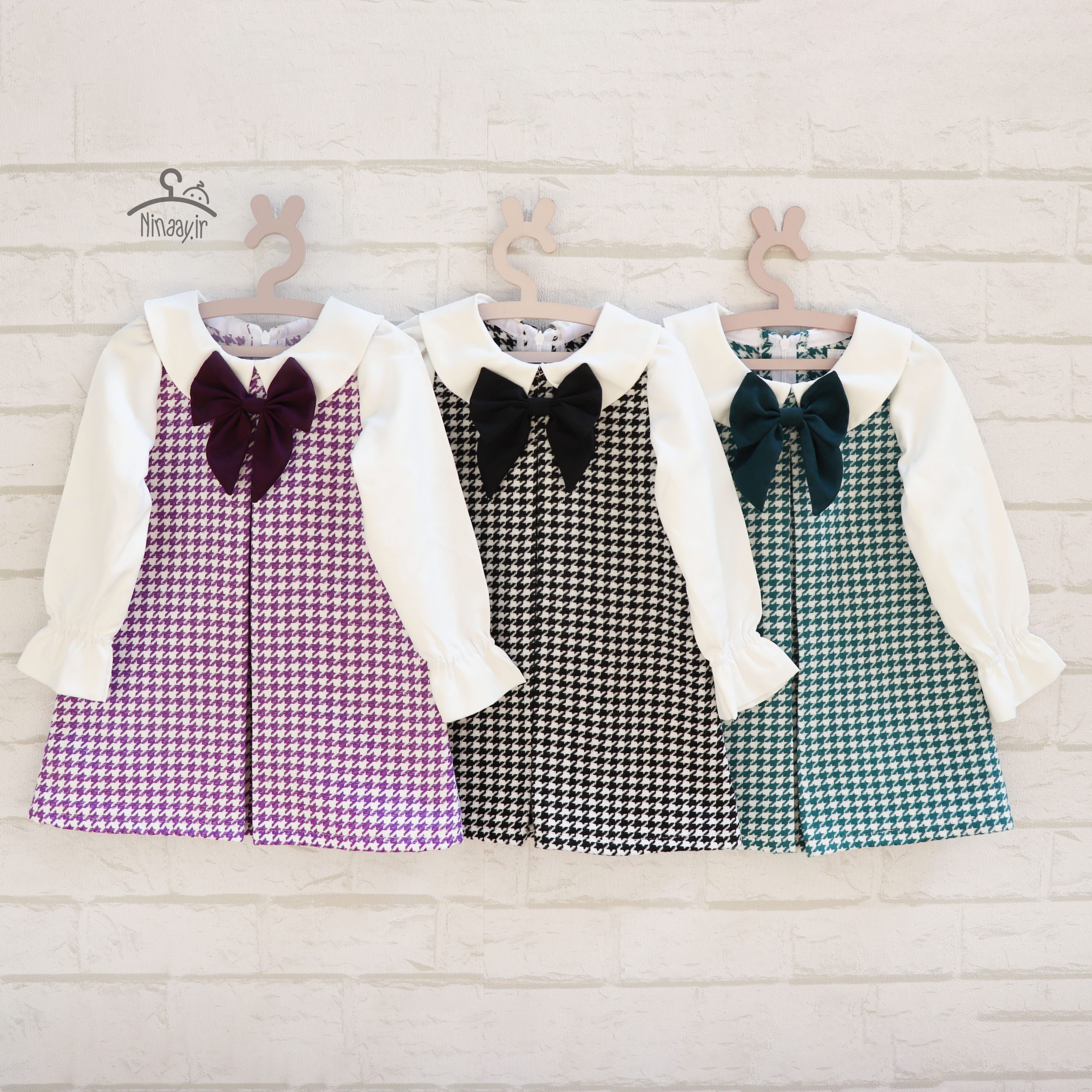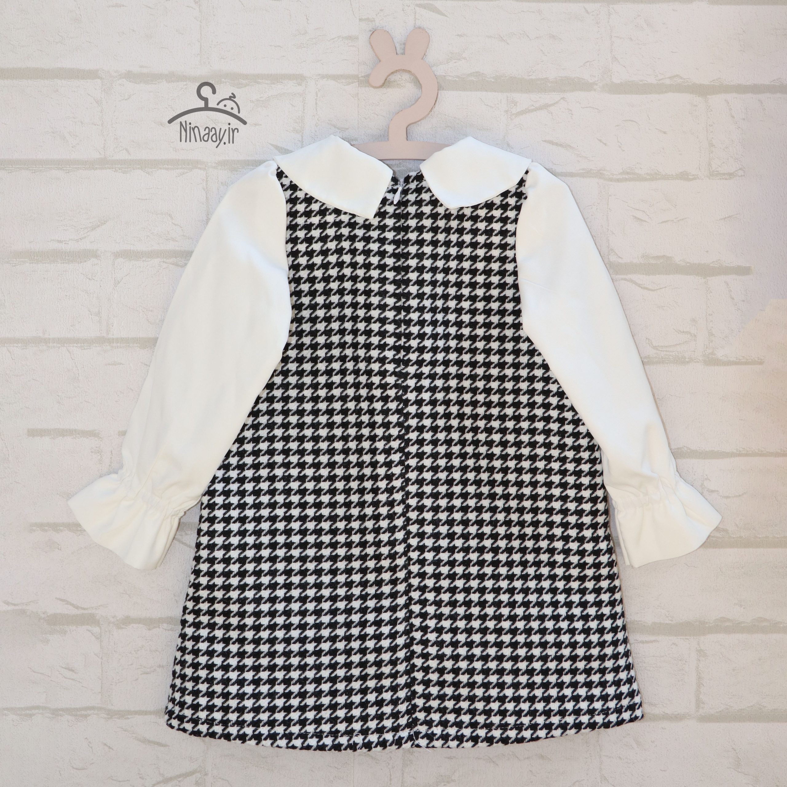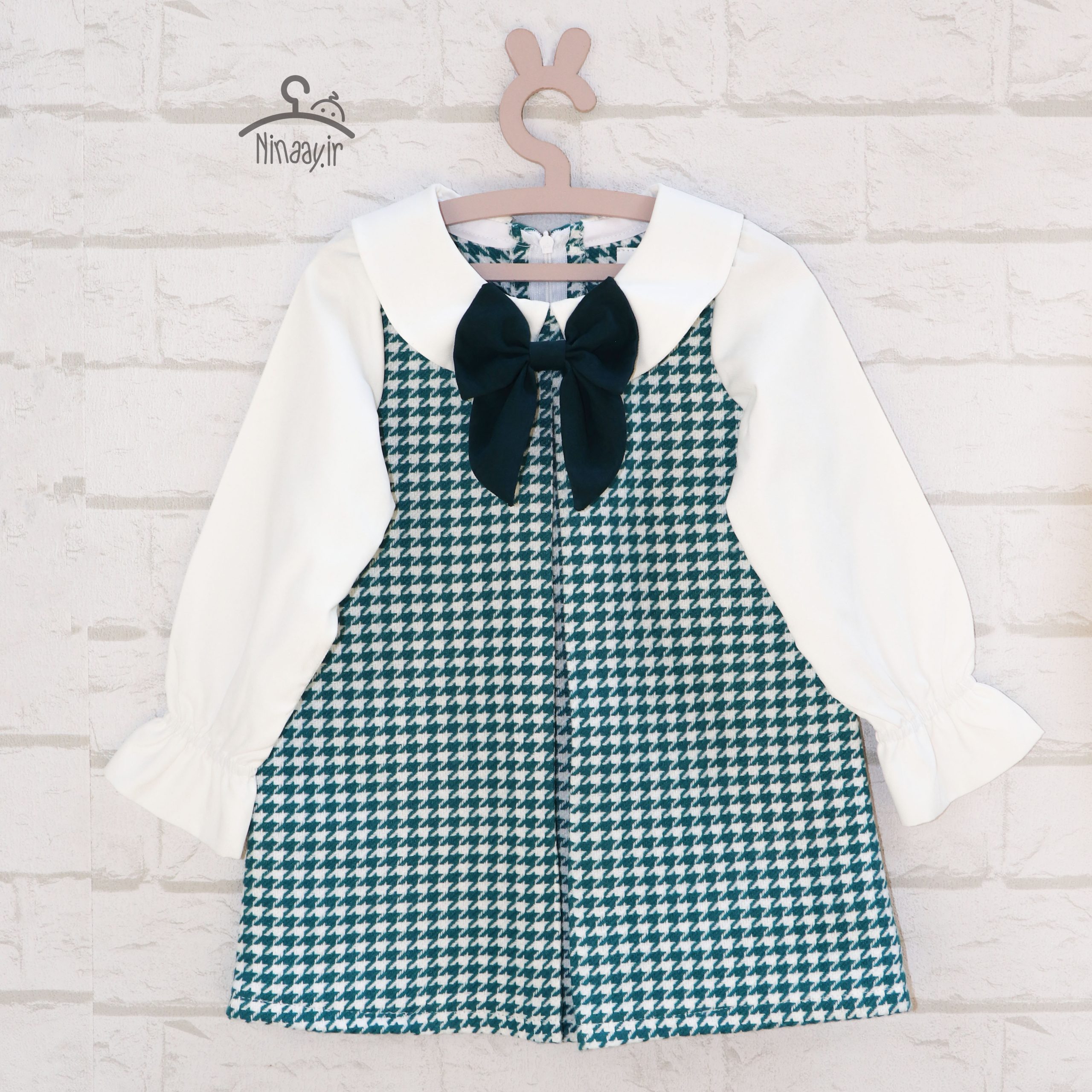 پیراهنی شیک از جنس پشمی پیردوپل با آستین و یقه میکرو کجراه، مناسب برای ۱ تا ۶ سال (جدول سایزبندی را چک کنید).