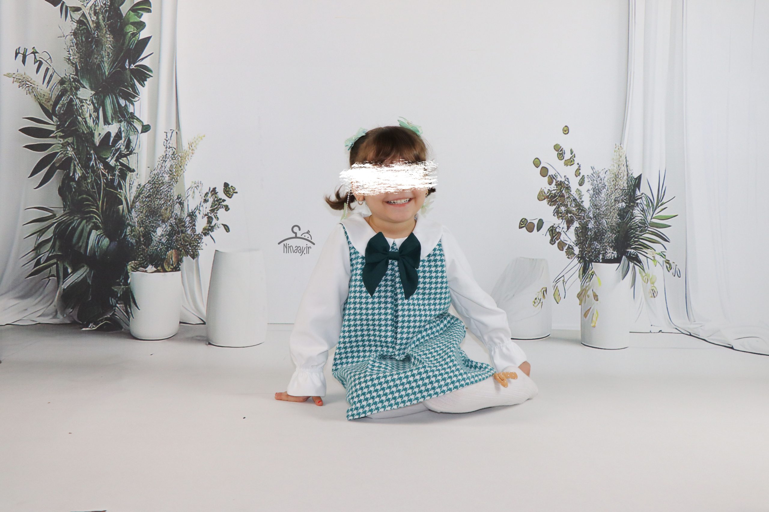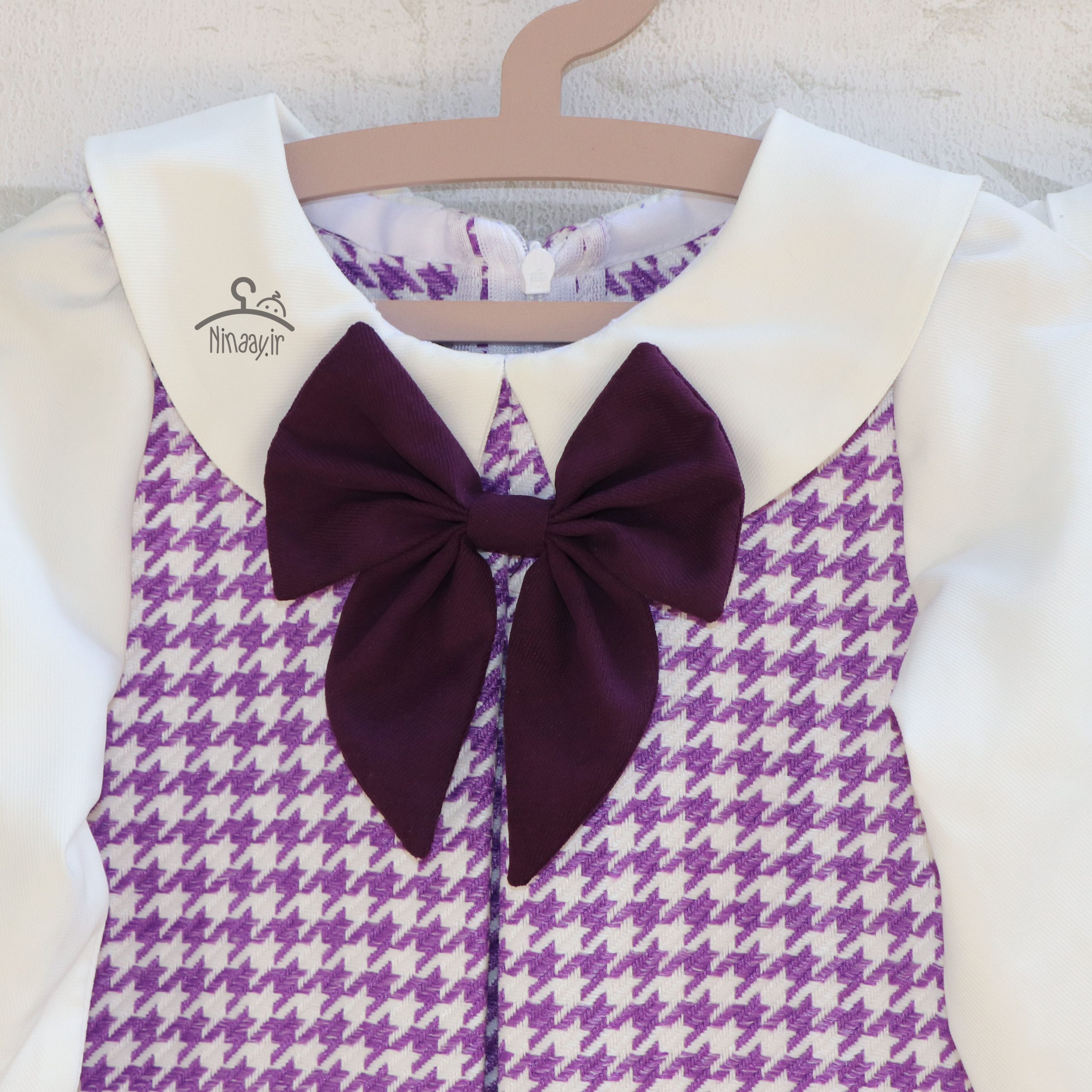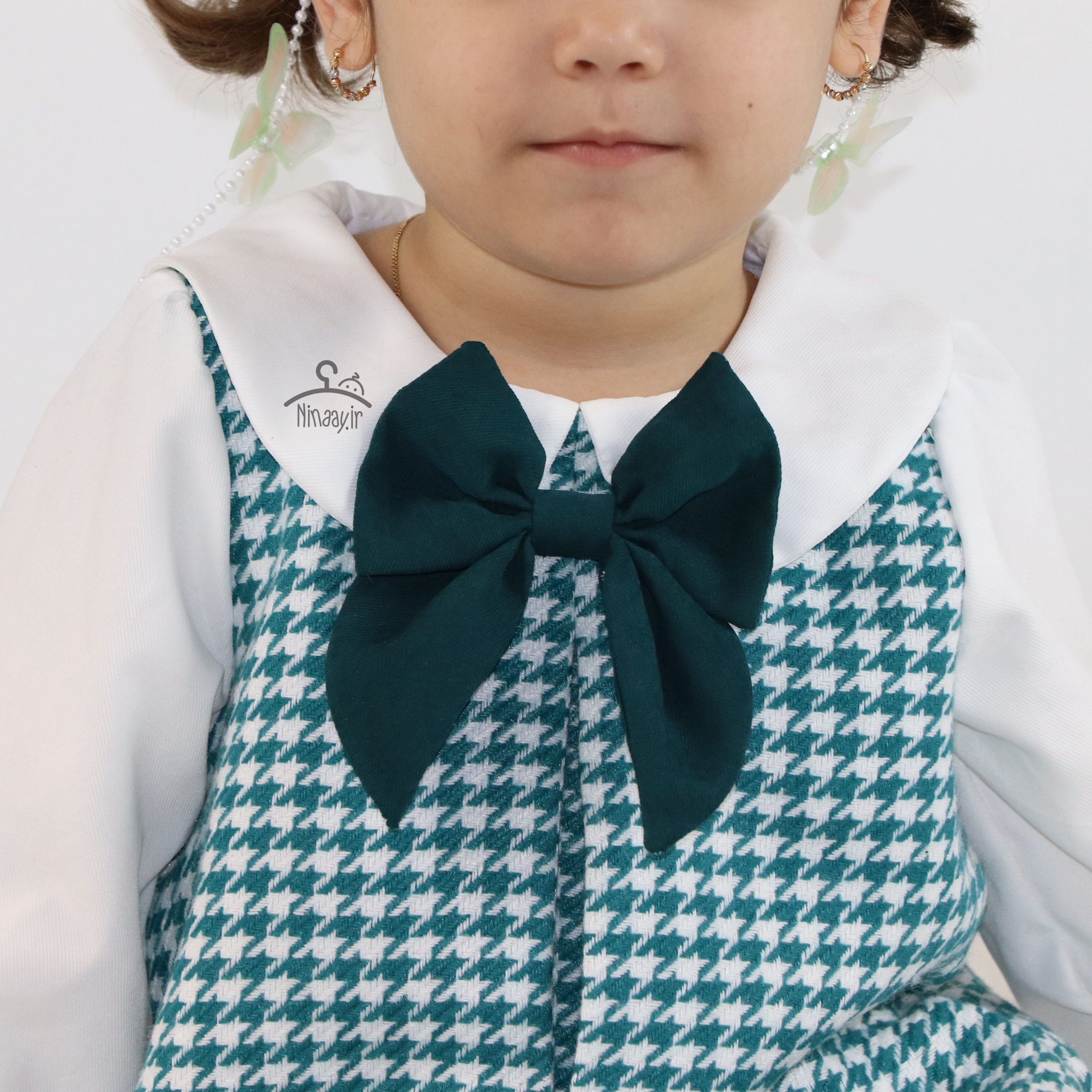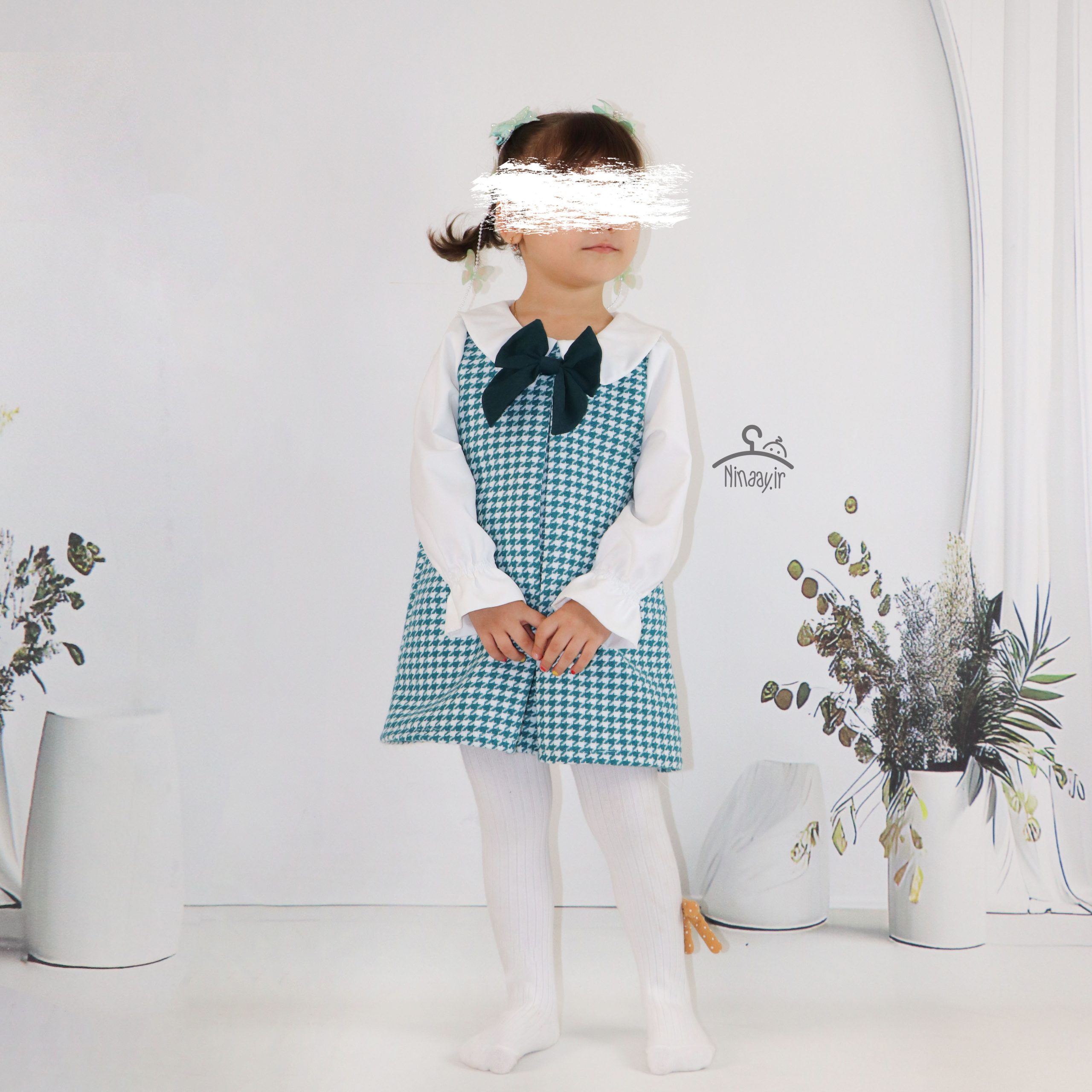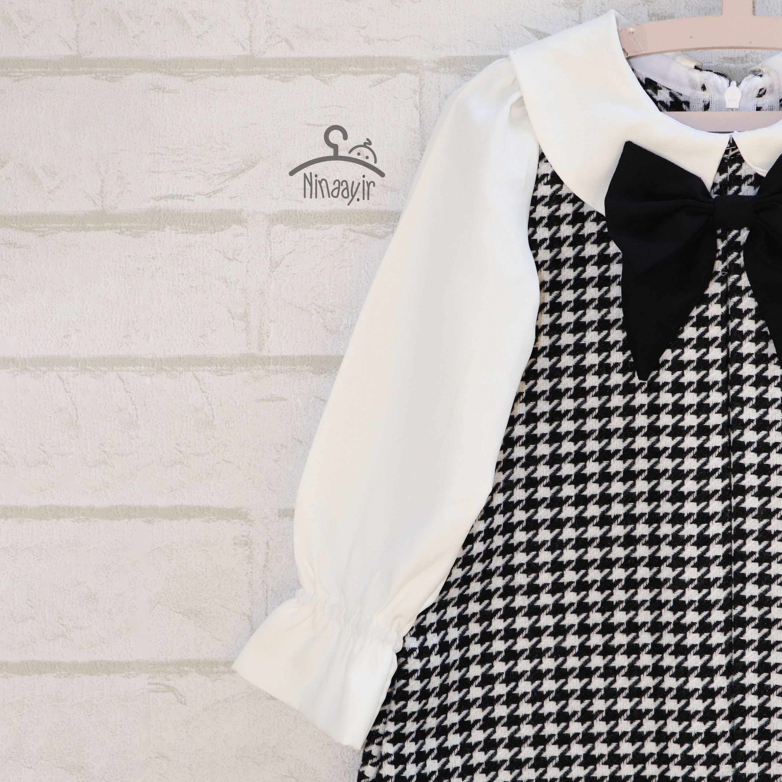 پیراهنی شیک از جنس پشمی پیردوپل با آستین و یقه میکرو کجراه، مناسب برای ۱ تا ۶ سال (جدول سایزبندی را چک کنید).
