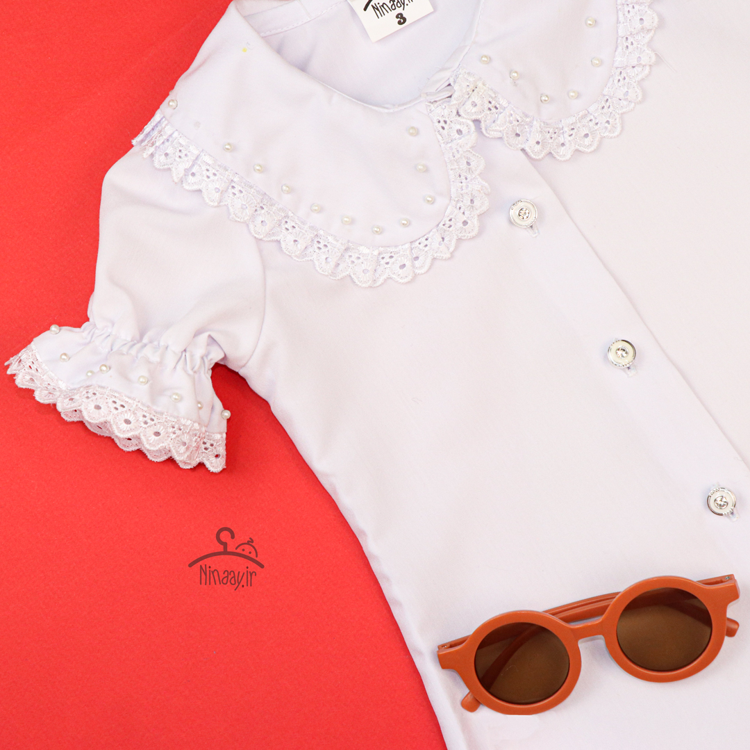 این شومیز دوستداشتنی با پارچه تترون باکیفیت، حس راحتی و خنکی رو به دلبندتون هدیه میده و با تزیینات تور کتان و مروارید، جلوهای شیک و جذاب به استایلش میبخشه. مناسب برای بچههای ۱ تا ۶ سال (لطفاً جدول سایزبندی را بررسی کنید)، در رنگ سفید خالص که زیبایی و سادگی رو با هم ترکیب میکنه. همراهی عالی برای لحظات پرنشاط کوچولوها! 👚🌟