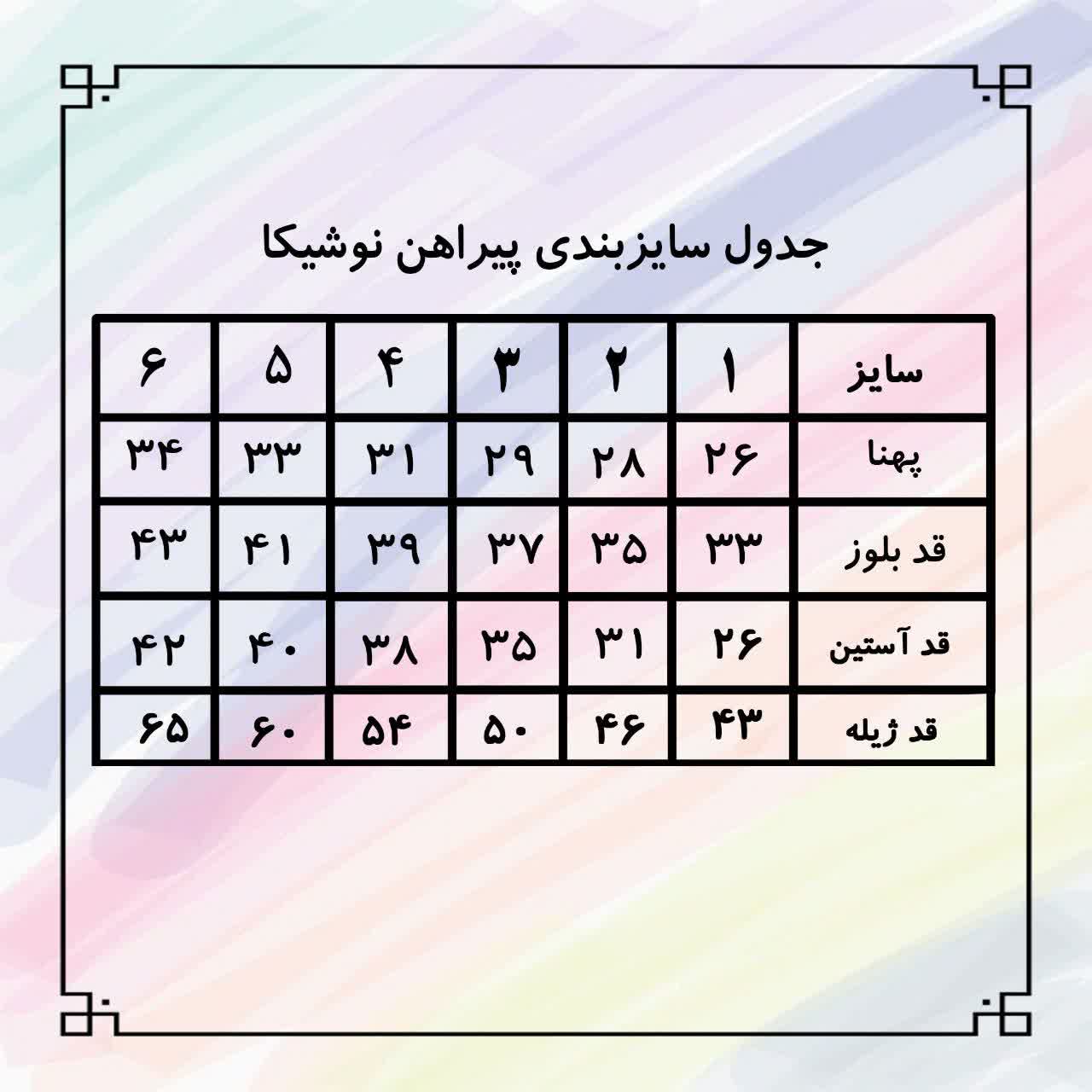 | سایز | 1, 2, 3, 4, 5, 6 |