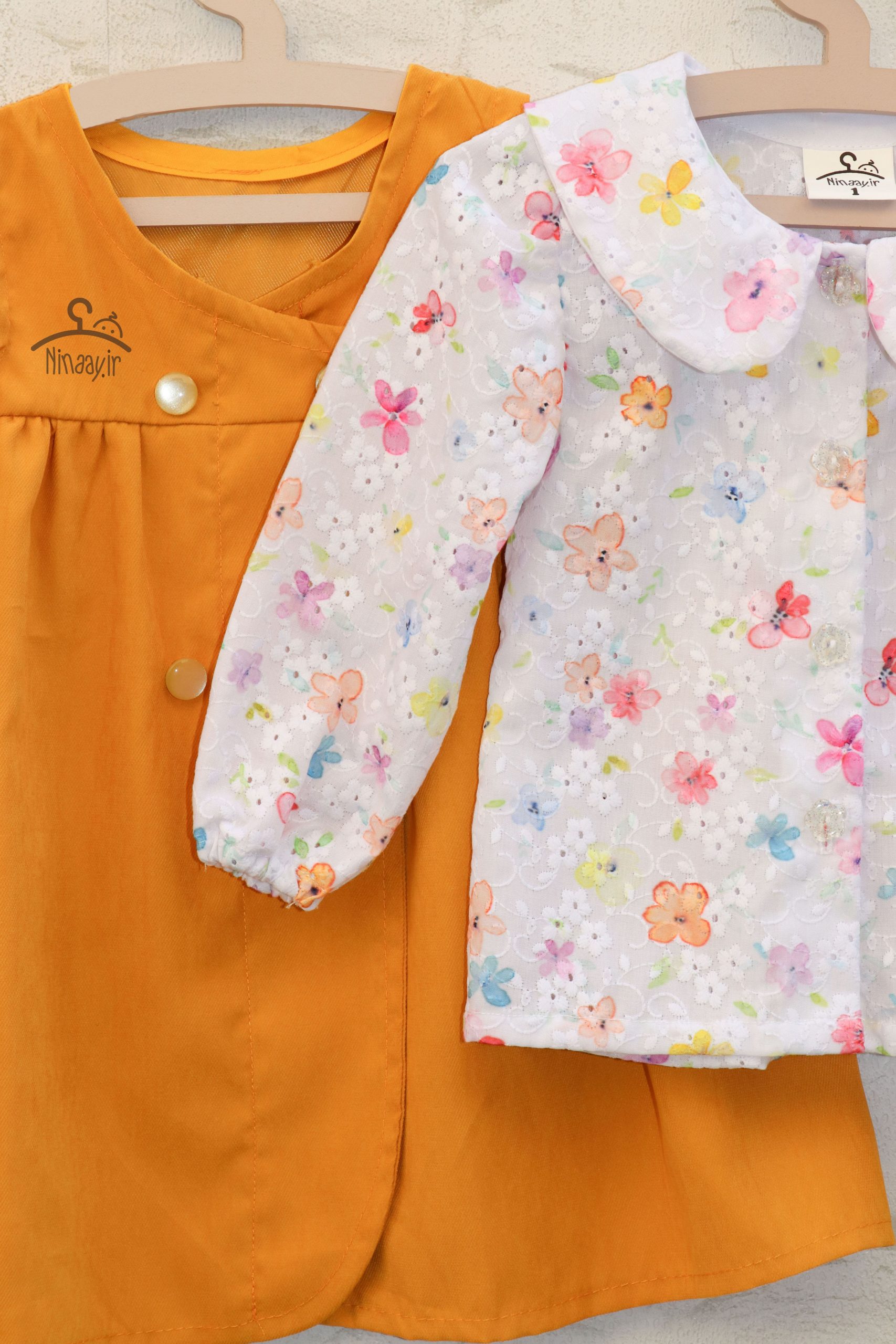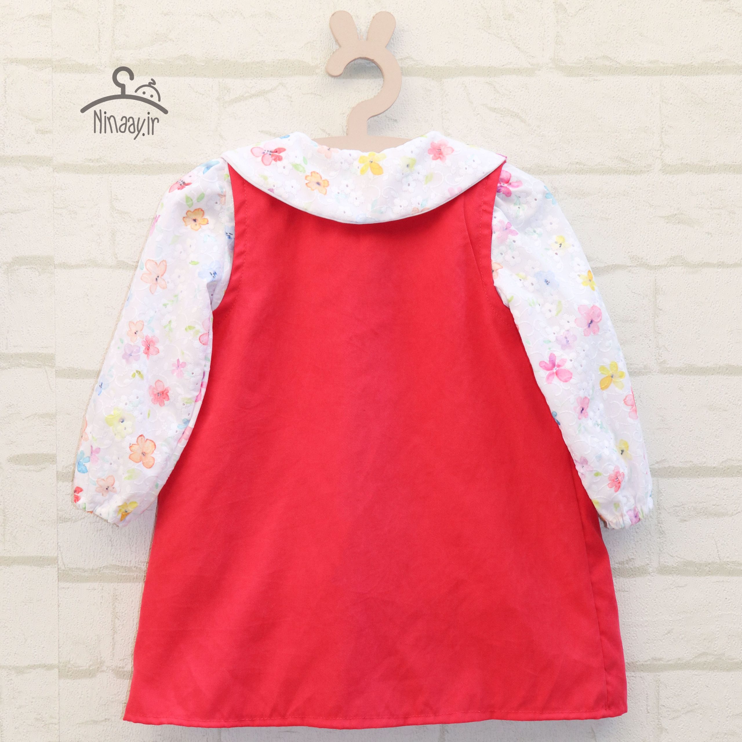 پیراهنی شیک با بلوز تترون خامهدوزی و سارافون میکرو کجراه، مناسب برای ۱ تا ۶ سال (جدول سایزبندی را چک کنید).